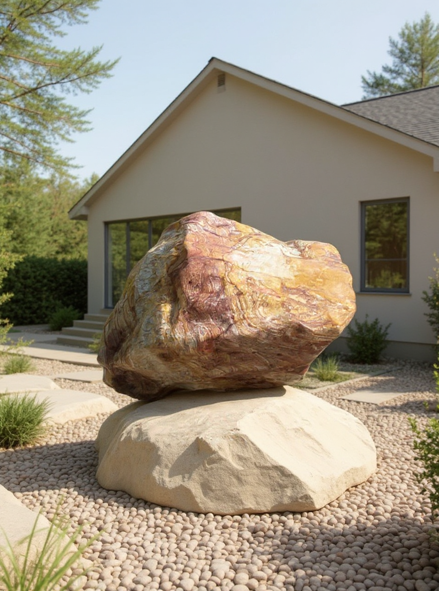 Каждая форма и рисунок породы неповторимы — это единственный экземпляр. Мы подбираем валун под палитру, масштаб и настроение пространства.